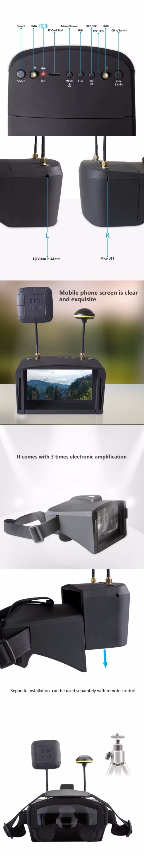 Color: Black Compatible model: For FPV Model number: 800D 5 Inch 40ch 5.8ghz FPV Goggles Place of origin:Guangdong, China Selling Units:Single item Brand name:PFLY Single package size:8X4X4 cm