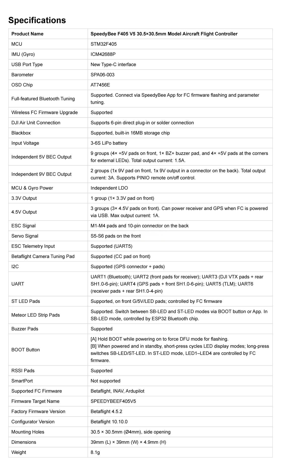 Color: Black Compatible model: For FPV Model number: F405 V5 OX32 55A SpeedyBee Type:FPV FC&ESC Place of origin:Guangdong, China Selling Units:Single item Brand name:SpeedyBee Single package size:12X8X5 cm