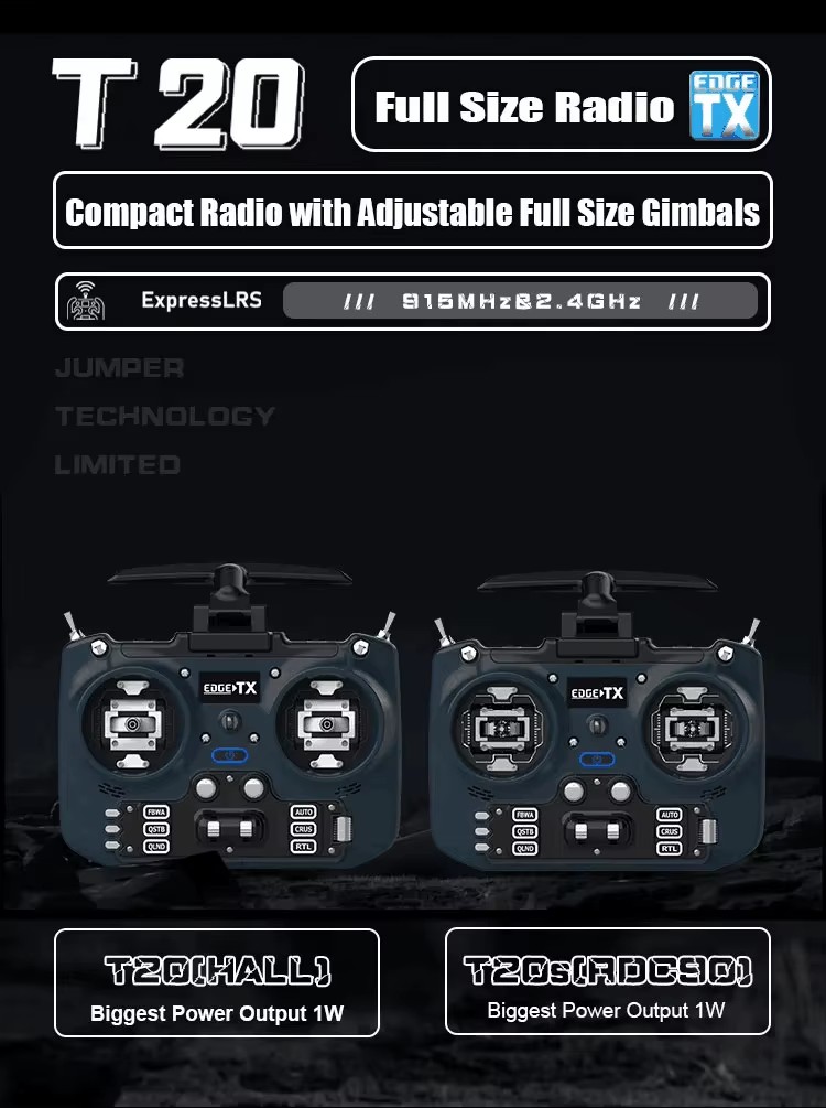 Jumper T20 ELRS 915MHz/2.4GHz HALL Sensor Gimbals OLED Screen Radio Controller Transmitter ELRS EdgeTX Multi Protocol Long Rang