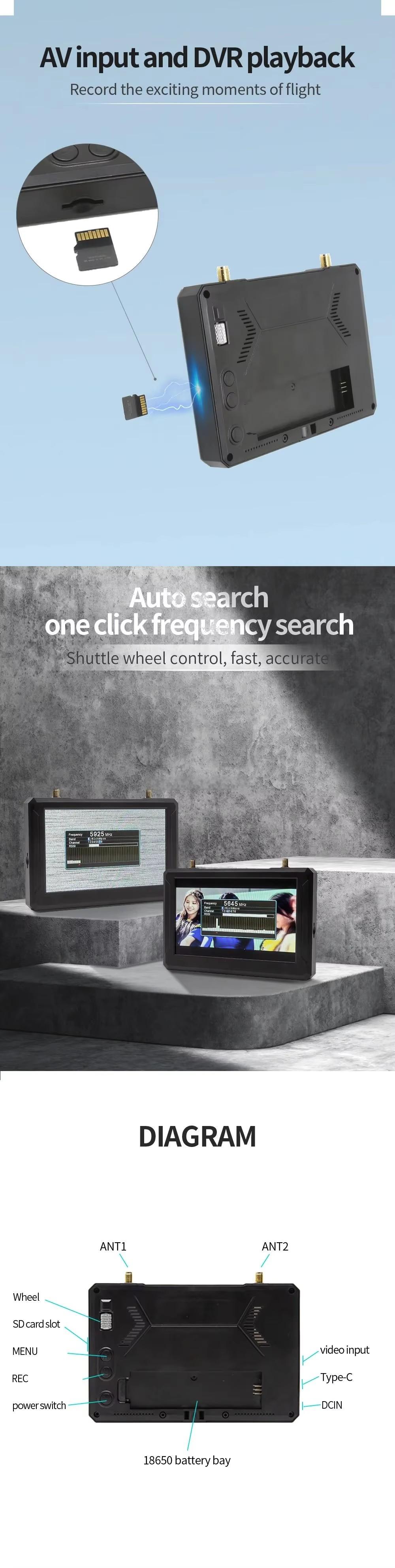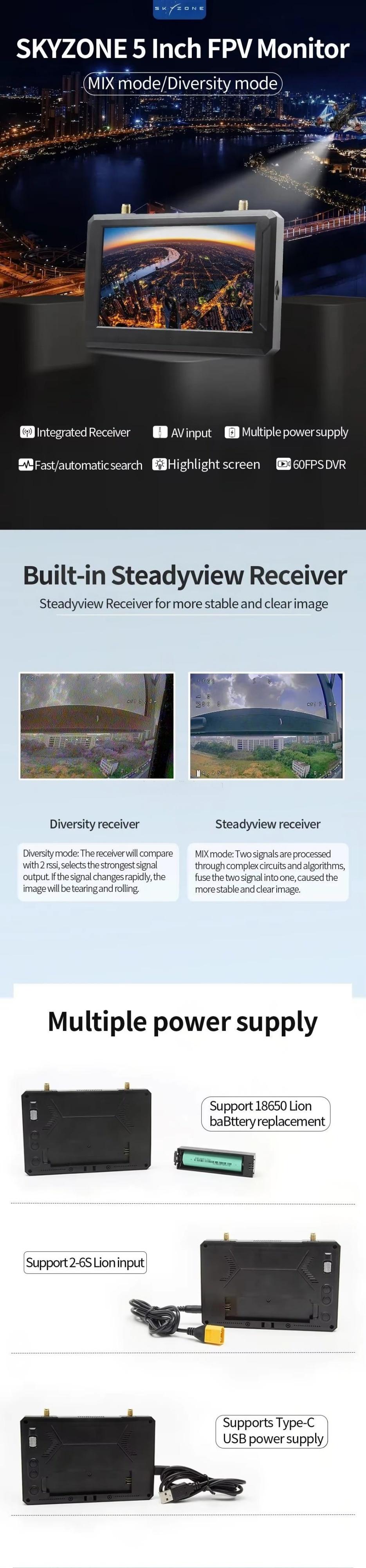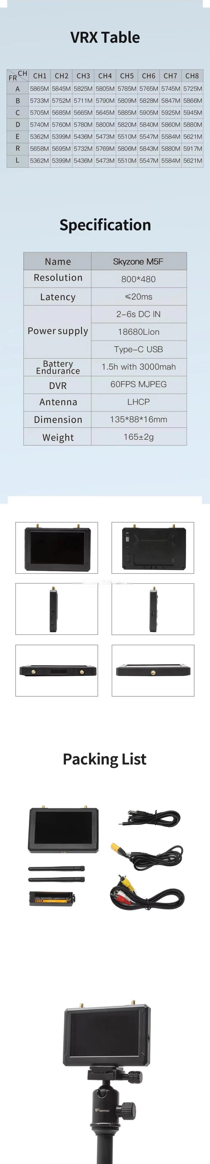 PFLY SKYZONE M5 FPV Monitor with DVR Unisex Mini Accessory Adapter Remote Control Toy Metal Plastic Helicopters RC Parts & Accs